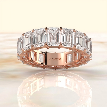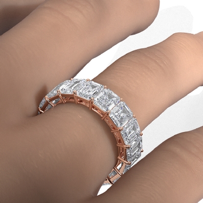 This shimmering shared prong emerald cut lab-grown diamond women's eternity wedding band handcrafted in 14k Rose Gold. Features . carats emerald diamonds in a shared prong setting IGI Certified. Mix and match this elegant wedding band with any diamond ring. Also available in 14k & 18k white gold, yellow gold, rose gold and platinum 950. If you don't find your desired jewelry, please don't hesitate to contact our designer to make your custom jewelry design. (6.7Ct. tw.)