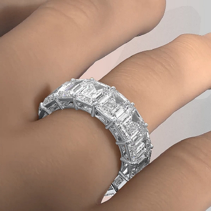 Exquisitely handcrafted shared prong women's eternity emerald cut lab-grown diamond wedding band shimmer brightly in this 18k Gold White. This wedding band showcases a carat emerald diamonds in shared prong setting IGI Certified. This simply elegant ring will look so good on your finger, also available in 14k & 18k white gold, yellow gold, rose gold and platinum 950. If you don't find your desired jewelry, please don't hesitate to contact our designer to make your custom jewelry design. (13.3Ct. tw.)