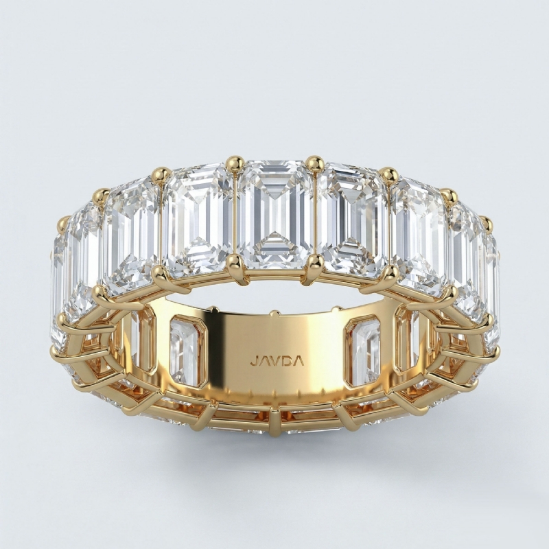 This timeless 17 stone anniversary ring features the boldness and intense sparkle of emerald cut lab grown diamonds crafted in 18k Gold Yellow. A classic, tailored shared prongs setting showcases carat eternity ring IGI Certified. Make your promise with matching wedding bands. Also available in 14k & 18k white gold, yellow gold, rose gold and platinum 950. If you don't find your desired jewelry, please don't hesitate to contact our designer to make your custom jewelry design. (11.25Ct. tw.)