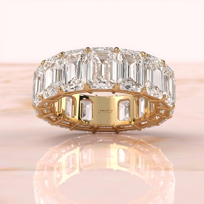 This gorgeous eternity emerald cut lab-grown diamond women's wedding band handcrafted in 14k Gold Yellow. This comfortable eternity wedding ring showcases carat emerald diamonds in a shared prong setting on high polished metal IGI Certified. This wedding ring symbolize love and commitment. Also available in 14k & 18k white gold, yellow gold, rose gold and platinum 950. If you don't find your desired jewelry, please don't hesitate to contact our designer to make your custom jewelry design. (13.2Ct. tw.)