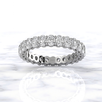 Fall in love with this brilliant oval cut lab grown diamond women's eternity wedding band handmade in 18k Gold White. This women's anniversary ring showcases a full circle of shared prong carat in oval diamond IGI Certified, also available in 14k & 18k white gold, yellow gold, rose gold and platinum 950. If you don't find your desired jewelry, please don't hesitate to contact our designer to make your custom jewelry design. (2.3Ct. tw.)