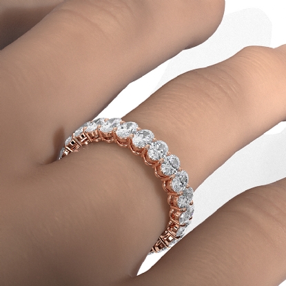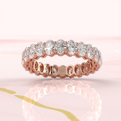 This stunning and timeless women's shared prong oval diamond eternity wedding band crafted in high quality 14k Rose Gold. Showcases carat oval cut diamond beautifully set in a shared prong setting IGI Certified. This wedding ring is ideal choice for party wear, also available in 14k & 18k white gold, yellow gold, rose gold and platinum 950. If you don't find your desired jewelry, please don't hesitate to contact our designer to make your custom jewelry design. (2.9Ct. tw.)