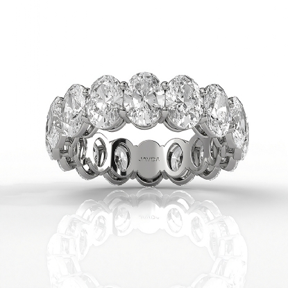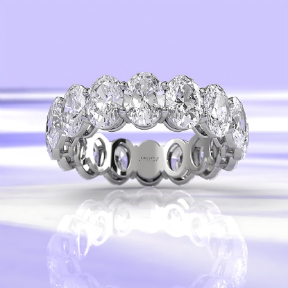 This natural 16 stone oval lab grown diamond women's eternity anniversary ring handcrafted in 18k Gold White. This stunning wedding band features carat oval diamonds in a shared prong setting with delicate shank IGI Certified. Our wedding ring are crafted meticulously to perfectly fit your finger, also available in 14k & 18k white gold, yellow gold, rose gold and platinum 950. If you don't find your desired jewelry, please don't hesitate to contact our designer to make your custom jewelry design. (6.75Ct. tw.)