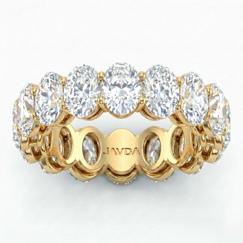 This natural 16 stone oval lab grown diamond women's eternity anniversary ring handcrafted in 18k Gold Yellow. This stunning wedding band features carat oval diamonds in a shared prong setting with delicate shank IGI Certified. Our wedding ring are crafted meticulously to perfectly fit your finger, also available in 14k & 18k white gold, yellow gold, rose gold and platinum 950. If you don't find your desired jewelry, please don't hesitate to contact our designer to make your custom jewelry design. (6.75Ct. tw.)