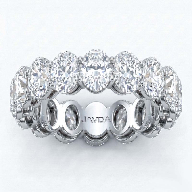This natural 16 stone oval lab grown diamond women's eternity anniversary ring handcrafted in Platinum 950. This stunning wedding band features carat oval diamonds in a shared prong setting with delicate shank IGI Certified. Our wedding ring are crafted meticulously to perfectly fit your finger, also available in 14k & 18k white gold, yellow gold, rose gold and platinum 950. If you don't find your desired jewelry, please don't hesitate to contact our designer to make your custom jewelry design. (6.75Ct. tw.)
