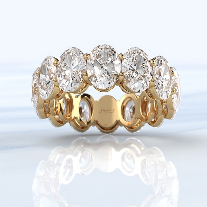 This sophisticated oval cut lab grown diamonds women's eternity wedding band handcrafted in high quality 14k Gold Yellow. This delicate ring showcases carat oval diamonds in a shared prong setting IGI Certified. This wedding band is the perfect way to display your joint promise on your most special day. Also available in 14k & 18k white gold, yellow gold, rose gold and platinum 950. If you don't find your desired jewelry, please don't hesitate to contact our designer to make your custom jewelry design. (10.1Ct. tw.)