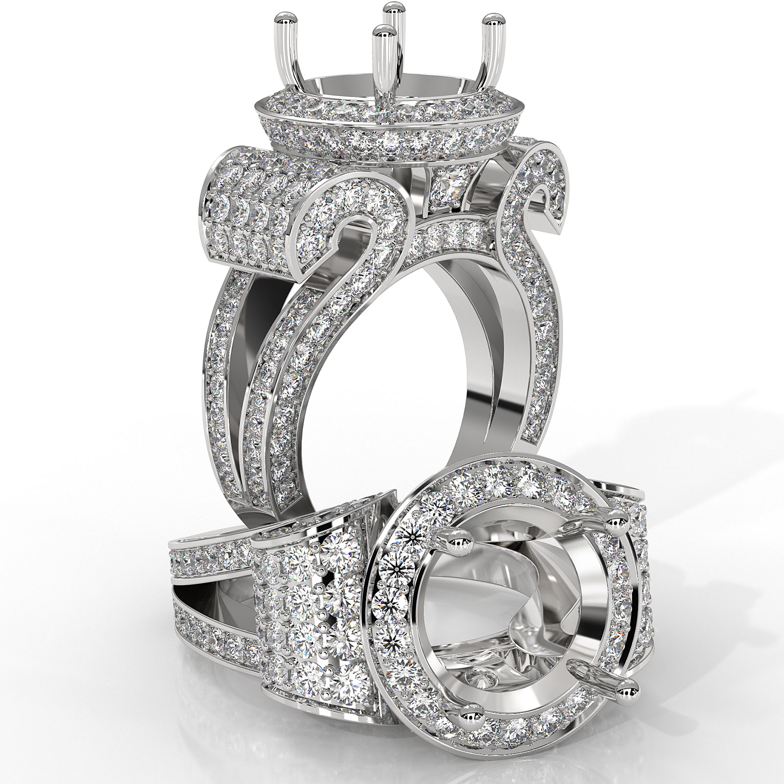 Round Diamond Engagement Ring Antique & Vintage Halo Pave Semi Mount 18k W Gold (2.7Ct. tw.)
