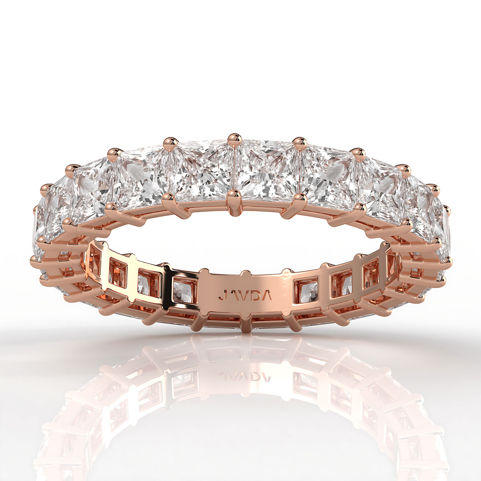 This elegant unique style princess lab grown diamond women's eternity wedding band handmade in 18k Rose Gold. Showcases carat princess diamonds in a shared prong setting IGI Certified. Also available in 14k & 18k white gold, yellow gold, rose gold and platinum 950. If you don't find your desired jewelry, please don't hesitate to contact our designer to make your custom jewelry design. (3.4Ct. tw.)
