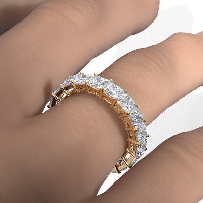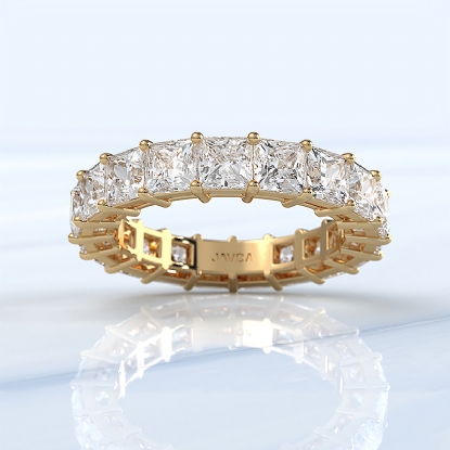 Gorgeous shared prong women's princess diamond eternity wedding band made in 14k Gold Yellow. This elegant diamond anniversary ring showcases carat princess diamond in a shared prong setting IGI Certified. This wedding band is suitable for any occasions. Also available in 14k & 18k white gold, yellow gold, rose gold and platinum 950. If you don't find your desired jewelry, please don't hesitate to contact our designer to make your custom jewelry design. (5.6Ct. tw.)