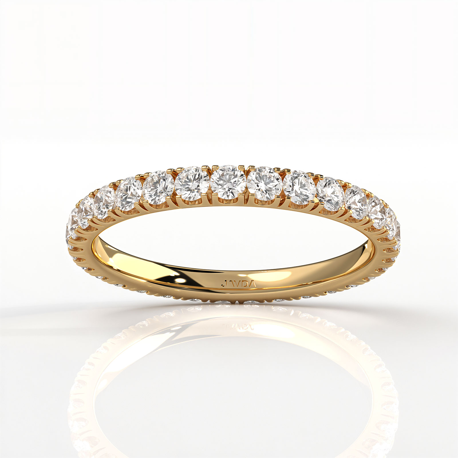 Elegantly crafted this modern design basket style round cut lab grown diamond women's eternity anniversary ring handmade in 14k Gold Yellow. This wedding band showcases carat round diamonds in a U cut prong setting with IGI Certified. This ring is also available in your choice of the center diamond and gold metal in 14k & 18k white gold, yellow gold, rose gold, and platinum 950. If you don't find your desired jewelry, please don't hesitate to contact our designer to make your custom jewelry design. (1Ct. tw.)