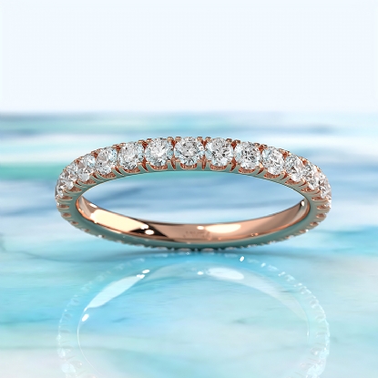 Elegantly crafted this modern design basket style round cut lab grown diamond women's eternity anniversary ring handmade in 14k Rose Gold. This wedding band showcases carat round diamonds in a U cut prong setting with IGI Certified. This ring is also available in your choice of the center diamond and gold metal in 14k & 18k white gold, yellow gold, rose gold, and platinum 950. If you don't find your desired jewelry, please don't hesitate to contact our designer to make your custom jewelry design. (1Ct. tw.)