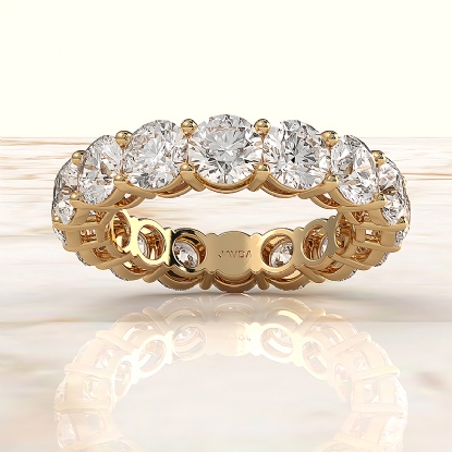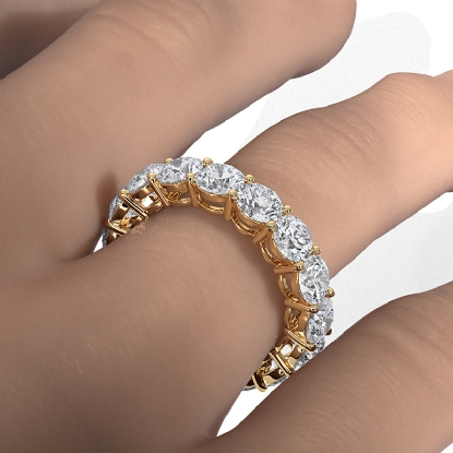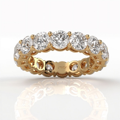 Symbol of everlasting love, this remarkable round cut lab grown diamond basket style women's eternity wedding band handmade in high quality 18k Gold Yellow. This wedding band showcases carat round diamonds framed in a U cut prong setting to complete the look. Also available in your choice of the center diamond and gold metal in 14k & 18k white gold, yellow gold, rose gold, and platinum 950. If you don't find your desired jewelry, please don't hesitate to contact our designer to make your custom jewelry design. (4.9Ct. tw.)