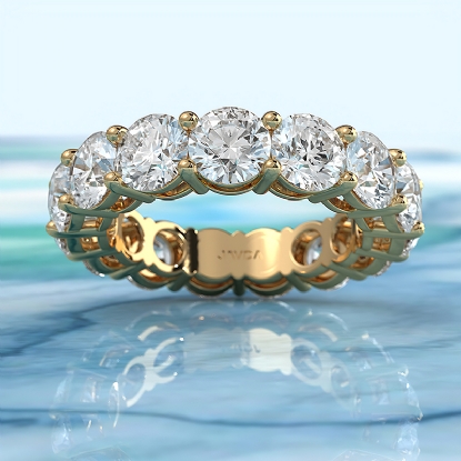 Enhance your look with this gorgeous 18k Gold Yellow basket style round cut lab grown diamond women's eternity wedding band . This anniversary ring features carat round diamonds in a U cut prong setting. Also available in your choice of the center diamond and gold metal in 14k & 18k white gold, yellow gold, rose gold, and platinum 950. If you don't find your desired jewelry, please don't hesitate to contact our designer to make your custom jewelry design. (6.25Ct. tw.)