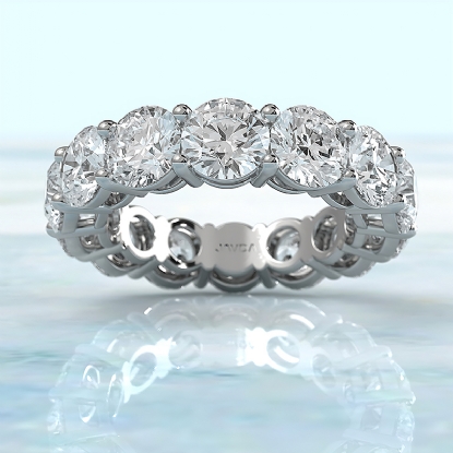 An exquisite symbol of your unconditional love with this brilliant round cut lab grown diamond basket style women's eternity anniversary wedding band crafted in 14k white gold. Showcases 7.65 ctw. carat dazzling round diamonds in a U cut prong setting to complete the look with IGI Certified. Also available in your choice of the center diamond and gold metal in 14k & 18k white gold, yellow gold, rose gold, and platinum 950. If you don't find your desired jewelry, please don't hesitate to contact our designer to make your custom jewelry design. (7.1Ct. tw.)