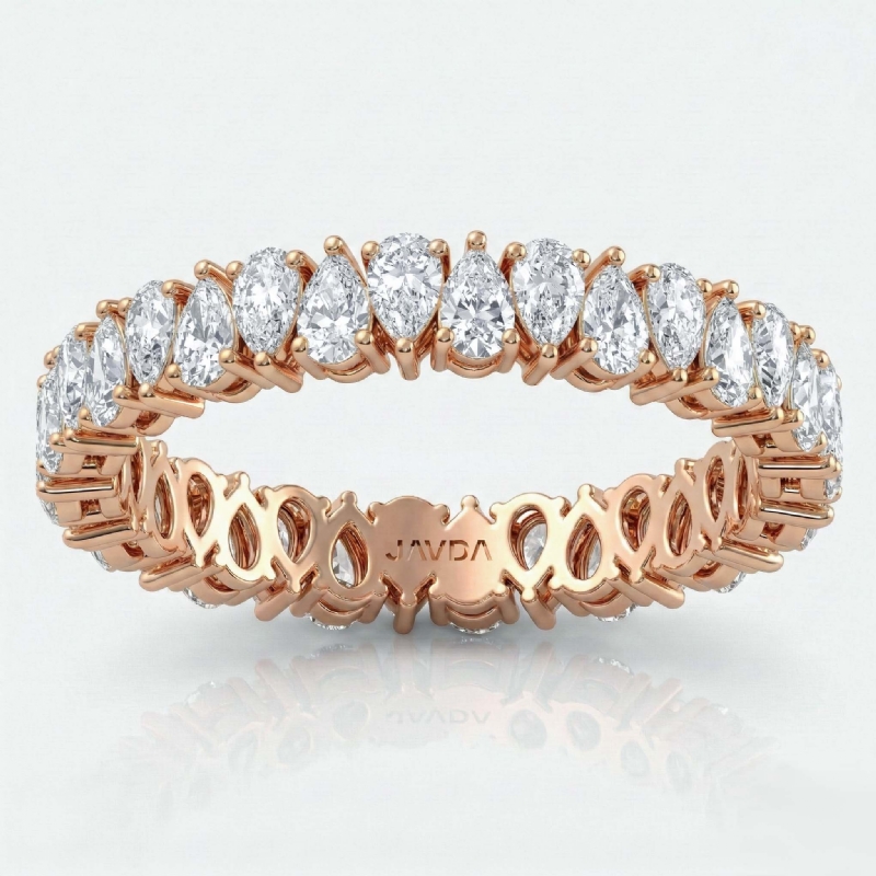 This breathtaking pear cut lab grown diamond women's eternity wedding band is a beautiful symbol of your love and commitment crafted in high quality 18k Rose Gold This 32 stone anniversary ring showcases carat pear diamonds secured with shared prong setting IGI Certified. Also available in 14k & 18k white gold, yellow gold, rose gold and platinum 950. If you don't find your desired jewelry, please don't hesitate to contact our designer to make your custom jewelry design. (1.35Ct. tw.)