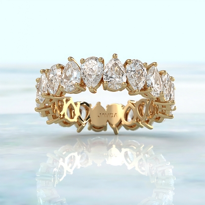 Delicately crafted this pear cut lab grown diamond women's eternity wedding ring crafted in 18k Gold Yellow, a lovely symbol of forever. Showcases carat dazzling pear diamonds framed in a shared prong setting. Also available in 14k & 18k white gold, yellow gold, rose gold, and platinum 950. If you don't find your desired jewelry, please don't hesitate to contact our designer to make your custom jewelry design. (4.5Ct. tw.)