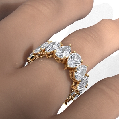 Appreciating the beauty of life with this beautiful pear cut lab grown diamond women's eternity wedding band handmade in 18k Gold Yellow. This anniversary ring showcases carat pear cut diamond in a shared prong setting with IGI Certified, also available in 14k & 18k white gold, yellow gold, rose gold and platinum 950. If you don't find your desired jewelry, please don't hesitate to contact our designer to make your custom jewelry design. (8.4Ct. tw.)