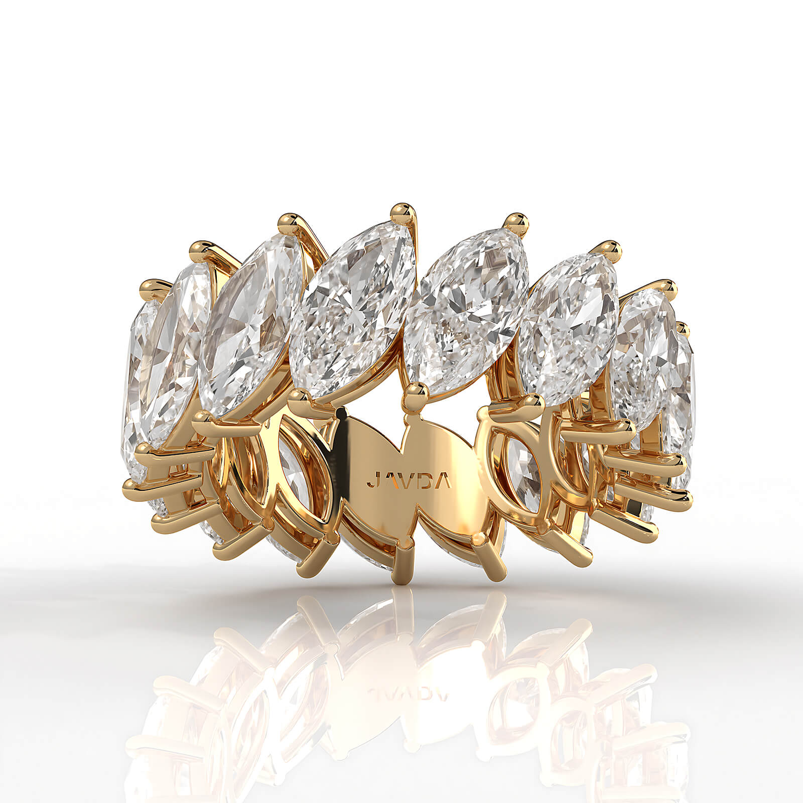 An infinite row of marquise cut lab grown diamond women's eternity wedding band handmade in 18k Gold Yellow. This timeless eternity ring features the boldness and elegant gleam of carat in a shared prong setting with IGI Certified. Also available in 14k & 18k white gold, yellow gold, rose gold and platinum 950. If you don't find your desired jewelry, please don't hesitate to contact our designer to make your custom jewelry design. (6.6Ct. tw.)