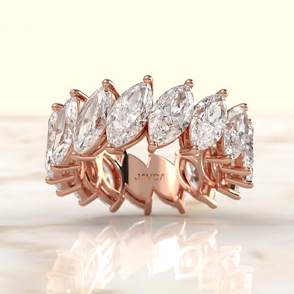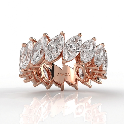 An infinite row of marquise cut lab grown diamond women's eternity wedding band handmade in 18k Rose Gold. This timeless eternity ring features the boldness and elegant gleam of carat in a shared prong setting with IGI Certified. Also available in 14k & 18k white gold, yellow gold, rose gold and platinum 950. If you don't find your desired jewelry, please don't hesitate to contact our designer to make your custom jewelry design. (6.6Ct. tw.)