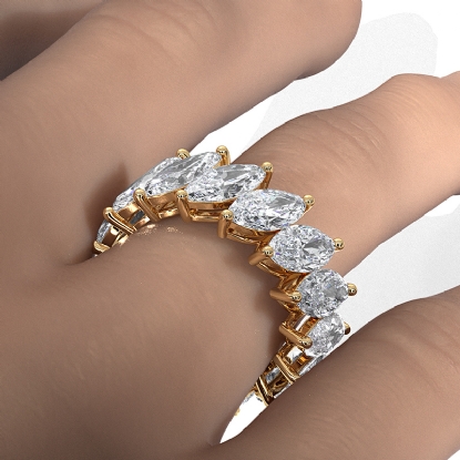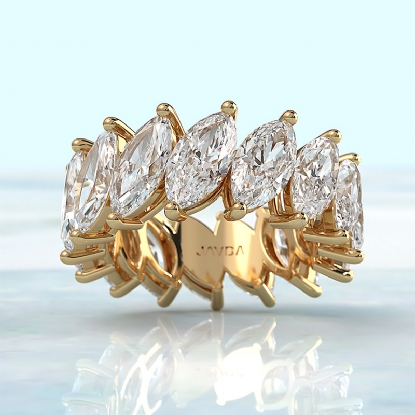 This carat marquise cut eternity band is stunning and unique. The marquise cut lab grown diamonds in this eternity band are set in shared prong setting handmade in 14k Gold Yellow with IGI Certified. This wedding band is the perfect match for our engagement rings. Also available in 14k & 18k white gold, yellow gold, rose gold and platinum 950. If you don't find your desired jewelry, please don't hesitate to contact our designer to make your custom jewelry design. (8.4Ct. tw.)