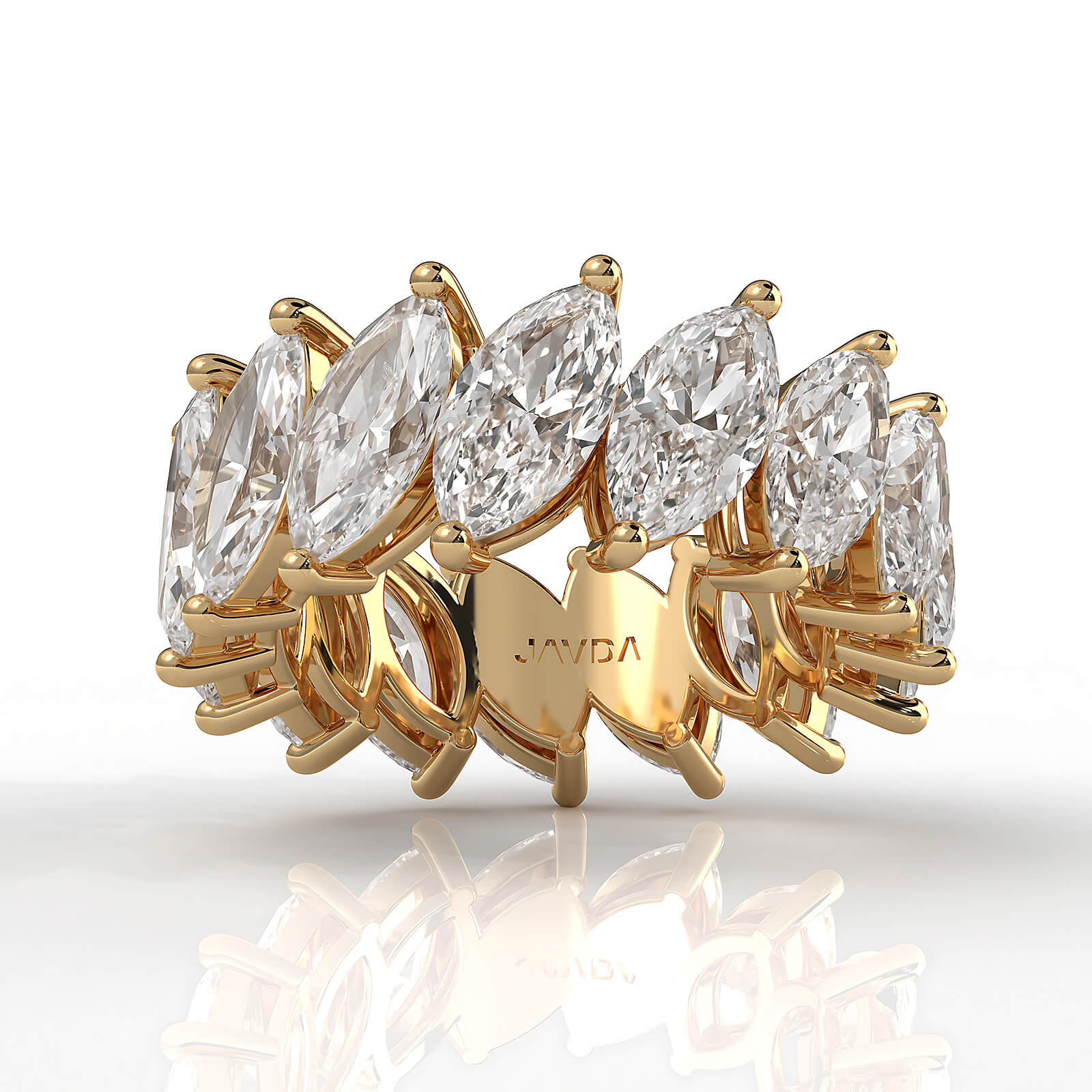 This carat marquise cut eternity band is stunning and unique. The marquise cut lab grown diamonds in this eternity band are set in shared prong setting handmade in 18k Gold Yellow with IGI Certified. This wedding band is the perfect match for our engagement rings. Also available in 14k & 18k white gold, yellow gold, rose gold and platinum 950. If you don't find your desired jewelry, please don't hesitate to contact our designer to make your custom jewelry design. (8.4Ct. tw.)