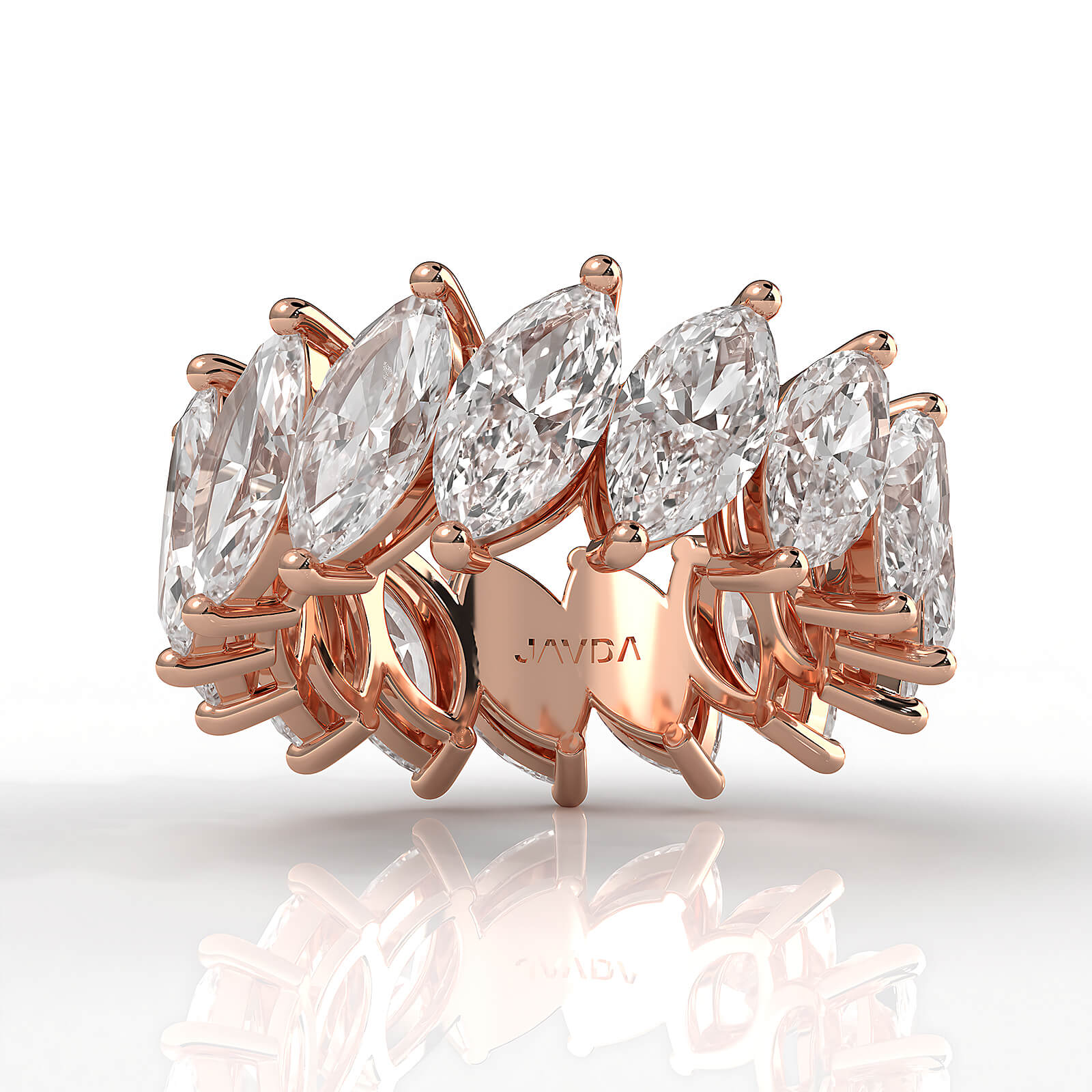 This carat marquise cut eternity band is stunning and unique. The marquise cut lab grown diamonds in this eternity band are set in shared prong setting handmade in 18k Rose Gold with IGI Certified. This wedding band is the perfect match for our engagement rings. Also available in 14k & 18k white gold, yellow gold, rose gold and platinum 950. If you don't find your desired jewelry, please don't hesitate to contact our designer to make your custom jewelry design. (8.4Ct. tw.)