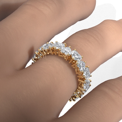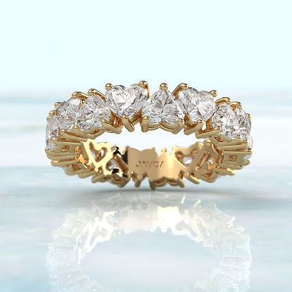 This marvellous heart cut lab grown diamond women's eternity wedding band handmade in 14k Gold Yellow. Showcases lovely carat heart diamonds beautifully set in a shared prong setting. Also available in 14k & 18k white gold, yellow gold, rose gold and platinum 950. If you don't find your desired jewelry, please don't hesitate to contact our designer to make your custom jewelry design. (4.9Ct. tw.)