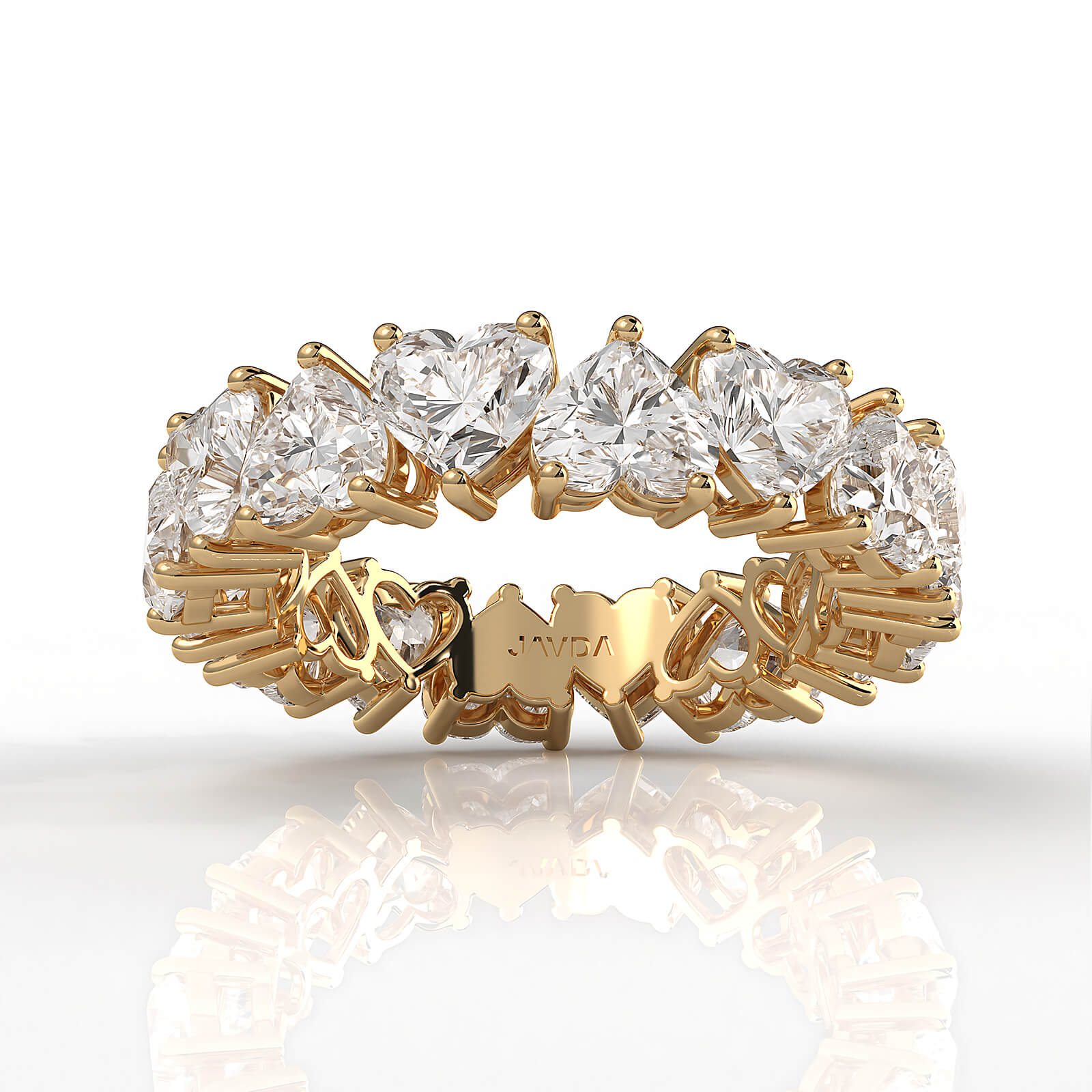This shared-prong diamond eternity band is mounted with beautiful heart lab grown diamonds totaling approximately carat women's eternity wedding band handmade in 18k Gold Yellow with IGI Certified. Also available in 14k & 18k white gold, yellow gold, rose gold and platinum 950. If you don't find your desired jewelry, please don't hesitate to contact our designer to make your custom jewelry design. (7.2Ct. tw.)