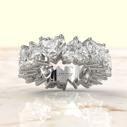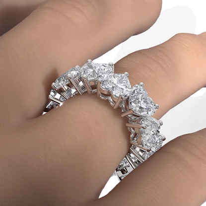 Delicately made this stunning eternity women's wedding band heart shape lab grown diamond made in high quality 18k Gold White. Showcases carat heart diamonds in a shared prong setting. A perfect wedding ring for stacking, create your own look by mixing it up. Also available in 14k & 18k white gold, yellow gold, rose gold and platinum 950. If you don't find your desired jewelry, please don't hesitate to contact our designer to make your custom jewelry design. (10.7Ct. tw.)