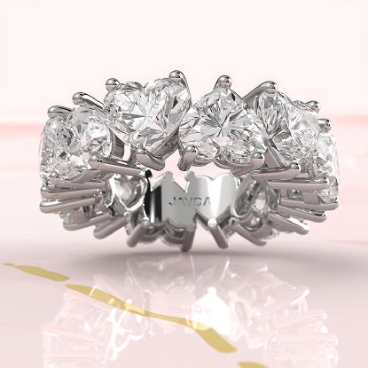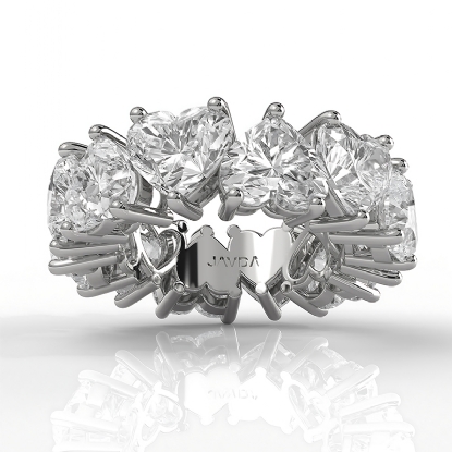 This shared prong women's eternity wedding band is mounted with lovely heart cut lab grown diamonds totaling approximately . This anniversary ring crafted in 18k Gold White. A perfect wedding ring for stacking, create your own look by mixing it up. Also available in 14k & 18k white gold, yellow gold, rose gold and platinum 950. If you don't find your desired jewelry, please don't hesitate to contact our designer to make your custom jewelry design. (12Ct. tw.)