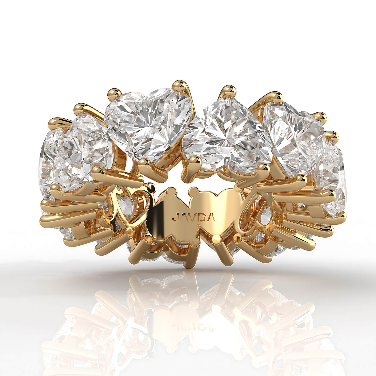 This shared prong women's eternity wedding band is mounted with lovely heart cut lab grown diamonds totaling approximately . This anniversary ring crafted in 18k Gold Yellow. A perfect wedding ring for stacking, create your own look by mixing it up. Also available in 14k & 18k white gold, yellow gold, rose gold and platinum 950. If you don't find your desired jewelry, please don't hesitate to contact our designer to make your custom jewelry design. (12Ct. tw.)