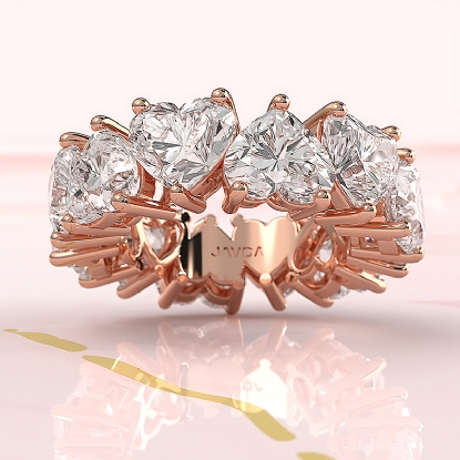 This shared prong women's eternity wedding band is mounted with lovely heart cut lab grown diamonds totaling approximately . This anniversary ring crafted in 18k Rose Gold. A perfect wedding ring for stacking, create your own look by mixing it up. Also available in 14k & 18k white gold, yellow gold, rose gold and platinum 950. If you don't find your desired jewelry, please don't hesitate to contact our designer to make your custom jewelry design. (12Ct. tw.)