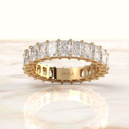 This vintage inspired women's eternity wedding band radiant shape lab grown diamond crafted in high quality 18k Gold Yellow. Features carat shared prongs with IGI Certified, this eternity band is equally beautiful on its own. Also available in 14k & 18k white gold, yellow gold, rose gold and platinum 950. If you don't find your desired jewelry, please don't hesitate to contact our designer to make your custom jewelry design. (4.4Ct. tw.)