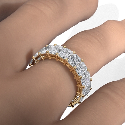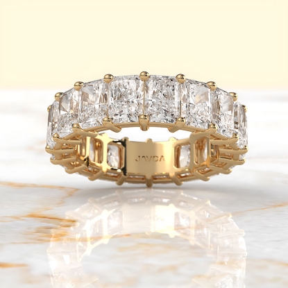 Make a striking addition to any outfit with this radiant shape lab grown diamond women's eternity wedding band handmade in 18k Gold Yellow. This stunning showcases carat radiant diamonds in a shared prong setting with IGI Certified. Also available in 14k & 18k white gold, yellow gold, rose gold and platinum 950. If you don't find your desired jewelry, please don't hesitate to contact our designer to make your custom jewelry design. (8.35Ct. tw.)