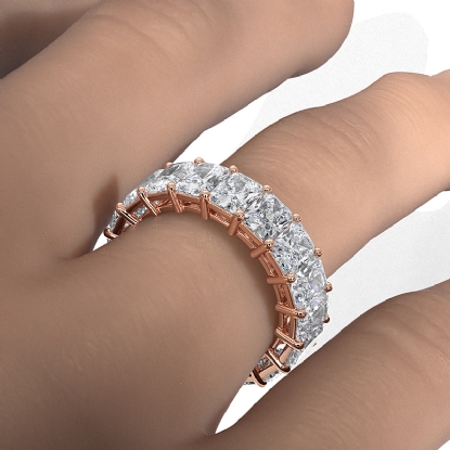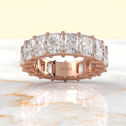 Make a striking addition to any outfit with this radiant shape lab grown diamond women's eternity wedding band handmade in 18k Rose Gold. This stunning showcases carat radiant diamonds in a shared prong setting with IGI Certified. Also available in 14k & 18k white gold, yellow gold, rose gold and platinum 950. If you don't find your desired jewelry, please don't hesitate to contact our designer to make your custom jewelry design. (8.35Ct. tw.)