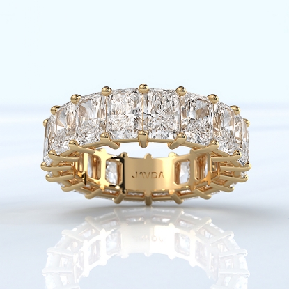 Take her breath away with this remarkable design, radiant cut lab grown women's eternity wedding band anniversary ring made in 18k Gold Yellow. This wedding band is set with 18 radiant cut diamonds totaling carat with shared prong setting in IGI Certified. Also available in 14k & 18k white gold, yellow gold, rose gold and platinum 950. If you don't find your desired jewelry, please don't hesitate to contact our designer to make your custom jewelry design. (8.5Ct. tw.)