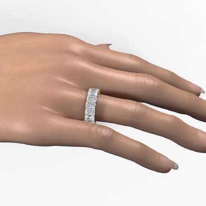 Design your own sparkling 17 stone women's eternity wedding band radiant cut lab grown diamond made in 18k Gold Yellow. Showcases carat radiant shape diamond secured with shared prong IGI Certified. This wedding ring is perfect for the person that loves the look of an eternity band. Also available in 14k & 18k white gold, yellow gold, rose gold and platinum 950. If you don't find your desired jewelry, please don't hesitate to contact our designer to make your custom jewelry design. (11.05Ct. tw.)