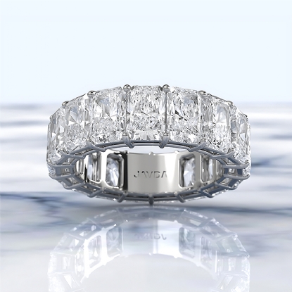 Design your own sparkling 17 stone women's eternity wedding band radiant cut lab grown diamond made in Platinum 950. Showcases carat radiant shape diamond secured with shared prong IGI Certified. This wedding ring is perfect for the person that loves the look of an eternity band. Also available in 14k & 18k white gold, yellow gold, rose gold and platinum 950. If you don't find your desired jewelry, please don't hesitate to contact our designer to make your custom jewelry design. (11.05Ct. tw.)