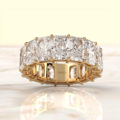This women's eternity radiant cut lab grown diamond wedding band is a beautiful symbol of your love and commitment. Features carat radiant diamond secured with shared prong setting Certified by IGI. This breathtaking anniversary ring crafted in high quality 14k Gold Yellow. Also available in 14k & 18k white gold, yellow gold, rose gold and platinum 950. If you don't find your desired jewelry, please don't hesitate to contact our designer to make your custom jewelry design. (12.75Ct. tw.)