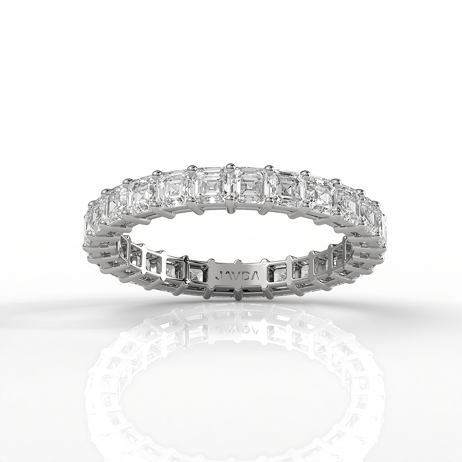Stunning shared prong lab grown diamond asscher cut women's eternity wedding band crafted in 18k Gold White. This beautiful classic anniversary ring showcases carat diamonds IGI Certified secured with shared prong. Add a touch of elegance to any outfit, also available in 14k & 18k white gold, yellow gold, rose gold and platinum 950. If you don't find your desired jewelry, please don't hesitate to contact our designer to make your custom jewelry design. (2.2Ct. tw.)