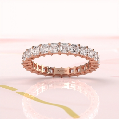 Stunning shared prong lab grown diamond asscher cut women's eternity wedding band crafted in 14k Rose Gold. This beautiful classic anniversary ring showcases carat diamonds IGI Certified secured with shared prong. Add a touch of elegance to any outfit, also available in 14k & 18k white gold, yellow gold, rose gold and platinum 950. If you don't find your desired jewelry, please don't hesitate to contact our designer to make your custom jewelry design. (2.2Ct. tw.)