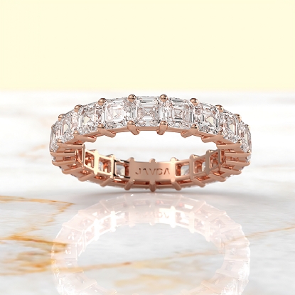 Asscher Lab Grown Diamond Shared Prong Women's Wedding Band 18k Rose Gold (3.8Ct. tw.)