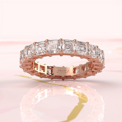 This delicate and timeless women's shared prong asscher shape lab grown diamond eternity wedding band anniversary ring crafted in high quality 14k Rose Gold. Showcases carat asscher cut diamond beautifully set in a shared prong setting. This anniversary ring is ideal choice for party wear, also available in 14k & 18k white gold, yellow gold, rose gold and platinum 950. If you don't find your desired jewelry, please don't hesitate to contact our designer to make your custom jewelry design. (4.7Ct. tw.)