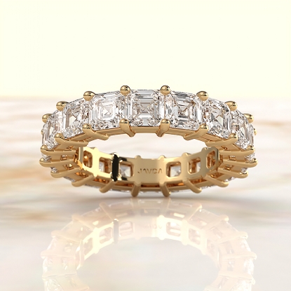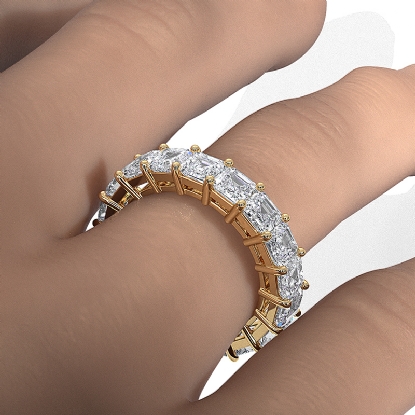 This dazzling asscher shape lab grown diamond women's eternity wedding band fashion ring crafted in 18k Gold Yellow. Showcases carat asscher cut diamonds in a shared prong setting, perfect for those who prefer a refined look. Also available in 14k & 18k white gold, yellow gold, rose gold and platinum 950. If you don't find your desired jewelry, please don't hesitate to contact our designer to make your custom jewelry design. (6.5Ct. tw.)