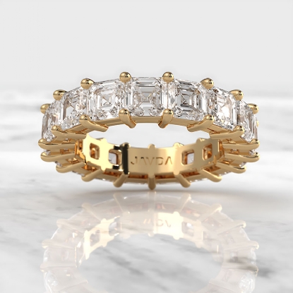 This shared prong lab grown diamond women's eternity wedding band is mounted with brilliant cut 16 stone asscher shape lab grown diamonds totaling approximately carat crafted in 14k Gold Yellow with IGI Certified. This anniversary ring is ideal choice for party wear, also available in 14k & 18k white gold, yellow gold, rose gold and platinum 950. If you don't find your desired jewelry, please don't hesitate to contact our designer to make your custom jewelry design. (7.4Ct. tw.)