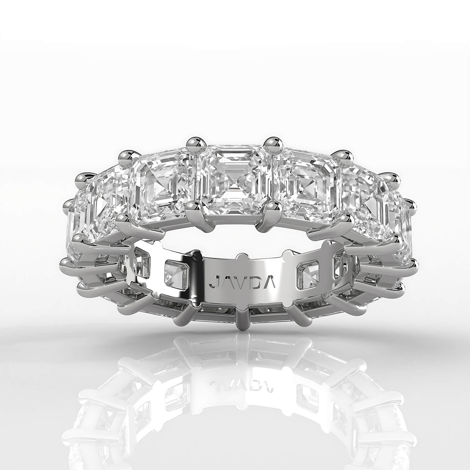 This asscher shape lab grown diamond women's eternity wedding band handmade in 18k Gold White. This beautiful anniversary ring showcases carat asscher diamond in a shared prong setting. Also available in 14k & 18k white gold, yellow gold, rose gold and platinum 950. If you don't find your desired jewelry, please don't hesitate to contact our designer to make your custom jewelry design. (9Ct. tw.)