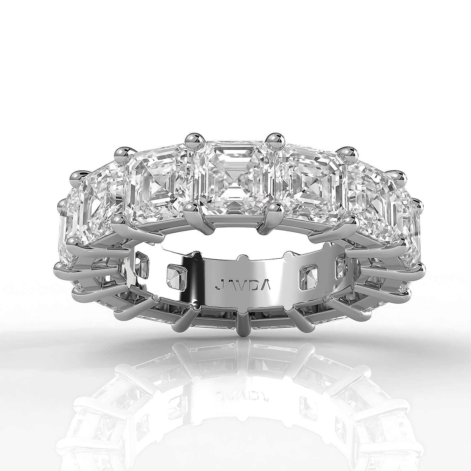 Shimmering 15stone asscher shape lab grown diamond women's eternity statement ring made in 18k Gold White. This beautiful stackable ring showcases carat asscher diamonds in a shared prong setting. This lovely design ring also available in 14k & 18k white gold, yellow gold, rose gold and platinum 950. If you don't find your desired jewelry, please don't hesitate to contact our designer to make your custom jewelry design. (10.5Ct. tw.)