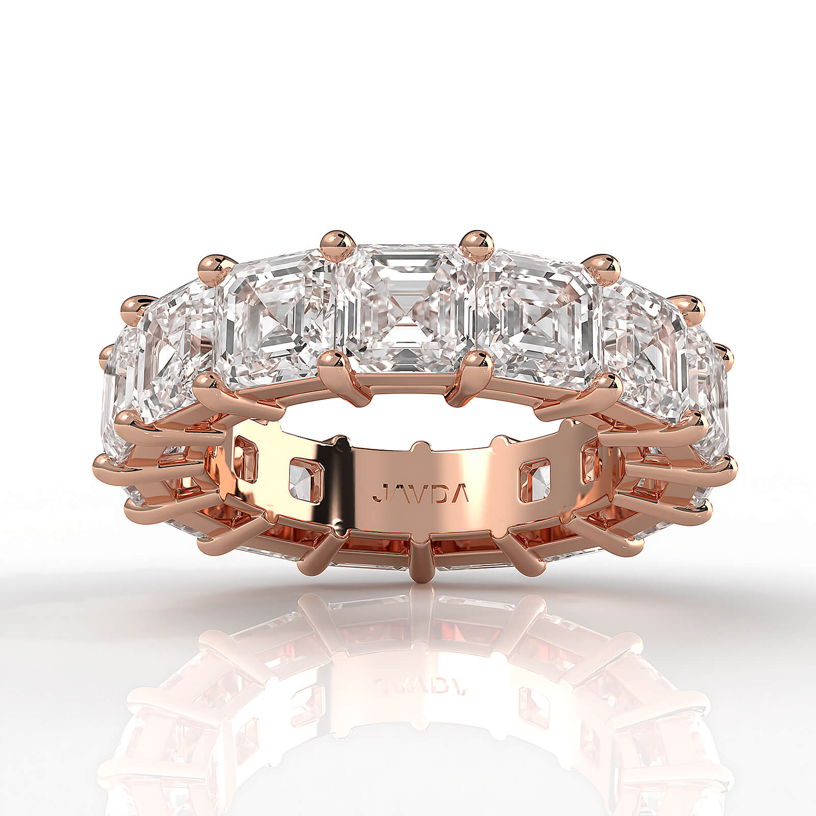 Shimmering 15stone asscher shape lab grown diamond women's eternity statement ring made in 18k Rose Gold. This beautiful stackable ring showcases carat asscher diamonds in a shared prong setting. This lovely design ring also available in 14k & 18k white gold, yellow gold, rose gold and platinum 950. If you don't find your desired jewelry, please don't hesitate to contact our designer to make your custom jewelry design. (10.5Ct. tw.)