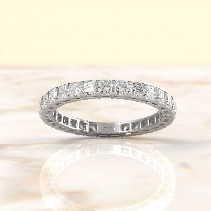 This women's eternity cushion cut lab grown diamond wedding band is a perfect wedding band. Features carat cushion diamond secured with shared prong setting Certified by IGI. This gorgeous anniversary ring crafted in high quality 18k Gold White. Also available in 14k & 18k white gold, yellow gold, rose gold and platinum 950. If you don't find your desired jewelry, please don't hesitate to contact our designer to make your custom jewelry design. (1.9Ct. tw.)