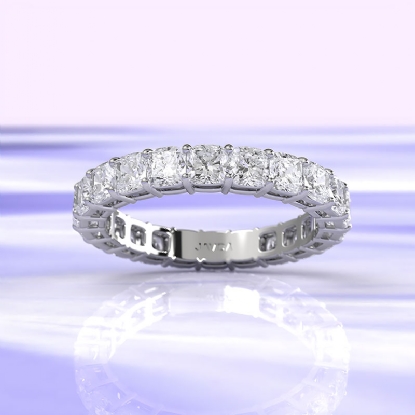 Sparkling shared prong cushion cut lab grown diamond women's eternity wedding band handmade in high polished Platinum 950 IGI Certified, it will look perfect any outfit. Showcases carat cushion diamond delicately secured with shared prong. Also available in 14k & 18k white gold, yellow gold, rose gold and platinum 950. If you don't find your desired jewelry, please don't hesitate to contact our designer to make your custom jewelry design. (3.4Ct. tw.)